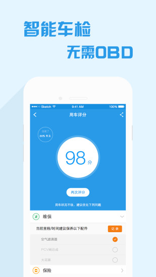 2.无需OBD,基于大数据检测车辆状况,提醒车主及时进行维修、保养、保险续保、违章交费等。