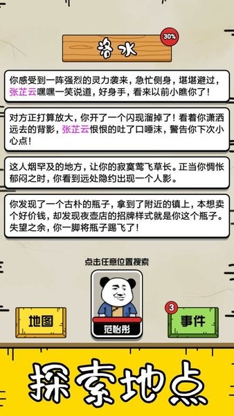 非常魔性的修仙冒险游戏,融合了文字与卡牌的玩法,同时以熊猫人为原型创造了十分多的角色,滑稽的形象逗趣的故事爽快的战斗,这场修仙冒险绝对能够让你欲罢不能,这场欢乐趣味的修仙旅程还有着诸多意想不到的挑战等待你去体验,完成你的修仙试炼成为真正的修仙大神!