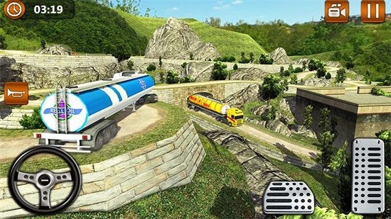 3、游戏中可以在狭窄的上坡道路上驾驶山地油轮车并安全的将货物运动目的地。