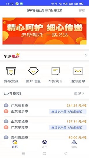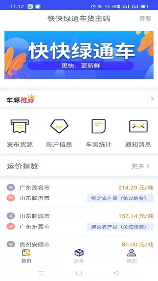 快快绿通车货主端可以让各位货主们在这里及时发布自己的货源订单,你可以根据需求来寻找合适的车辆自己司机进行运输,这里可以管理自己所有的货源订单,让你可以知晓每个订单的货运情况,每次发布后平台会直接推送给各位司机们进行快速接单。欢迎有需要的朋友下载使用!