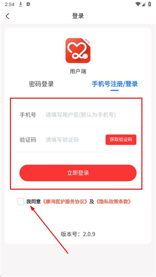 3、输入手机号和验证码,勾选协议,点击立即登录,完成注册。
