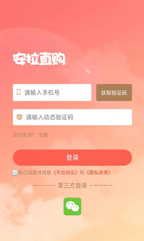 登录功能,用户需要登录一个账号后才能够使用安拉直购app;
