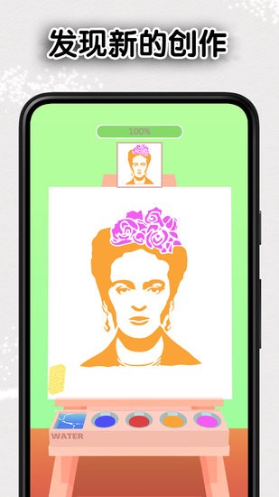 在指尖涂色这个应用中,您需要选择你要创作的杰作,只需从参考中选择颜色,然后在您想要的地方绘制即可。同时,如果你不想直接用模板,那可以在你有空的时候创造。只需使用您想要的颜色或混合。然后再画板上画出你心仪的画作。