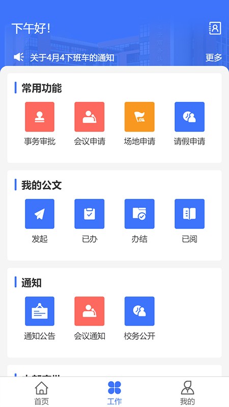 电商学院OAapp是一款给用户提供办公服务的平台,能够方便用户查看一些待办事项,能够查看各方面的通告信息,还有一些常用功能能够帮助办公人员,也提高了工作的效率,界面简洁明了。