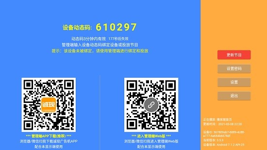 诚现广告机显示端app可以显示管理端投放的广告内容,此版本适合用于安装在大屏设备上,两者可以配合使用,可以在此端口进行多屏联动播放以及解码器的选择,可以控制调试,欢迎有需要的朋友下载体验!