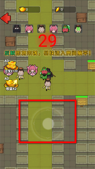 躺平三国是一直塔防闯关游戏。游戏中玩家会扮演一名三国时期名将,通过升级道具添加士兵抵挡反贼的攻击,打败反贼,逃出茅草屋。同时,玩家可在游戏中体验“反贼”角色,攻击房间内的所有战将,感受生存冒险的乐趣。互换身份的角色体验为玩家提供更有趣、刺激的游戏感受。