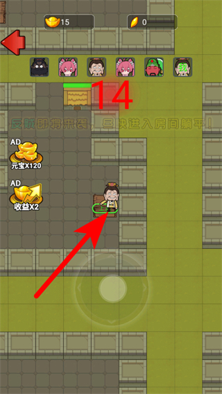 4、进入游戏场景后,选择房间区域,点击进入房间躺平,开始积累资源。