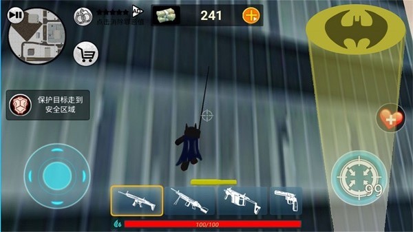 2、用你的绳子穿梭在城市的高楼之间,与各种犯罪分子作斗争。