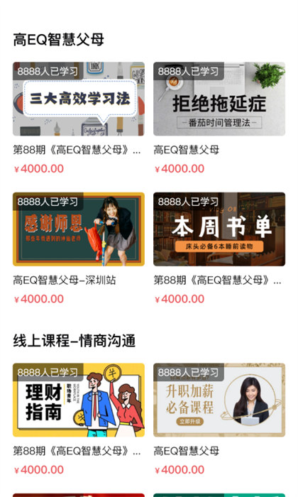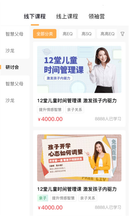 2、提供了很丰富的家庭教育类课程资源,包括情绪管理、亲子互动以及心理疏导等等丰富的课程内容。