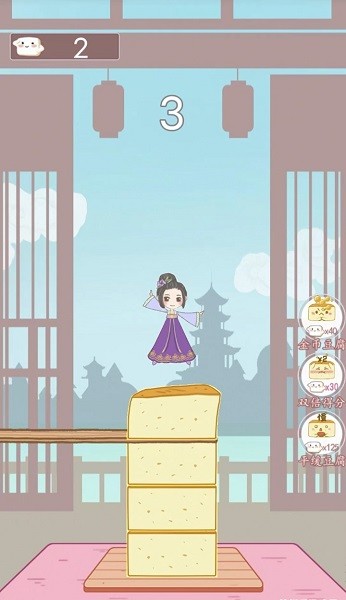 -方块会越叠越高,而一旦豆腐塔塌了游戏就结束了。