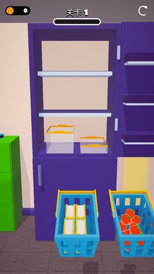 习惯囤物资的你,刚从超市购物回到家,准备把物资填满你的冰箱了吗?把不同的食物、饮料在冰箱货架上进行填充,并尝试把它们全部装进去,挨个清空你的购物篮,找到最完美的位置进行摆放,你想怎么放都行,加油,不要浪费一点冰箱空间,塞得刚刚好!