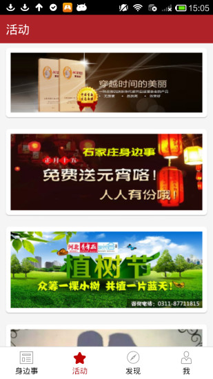 石家庄身边事app是一款有关石家庄生活资讯的手机软件。在石家庄身边事里面你看到的不仅仅只有新闻这么单调的一个版块,你可以在里面找到超特惠的美食,商品和游玩的地方。有车一族的朋友们,如果你们不知道哪里在查酒驾,我们可以告诉你那个路口在查酒驾。你也可以把身边的事情爆料出来,有可能会成为全场焦点哦!