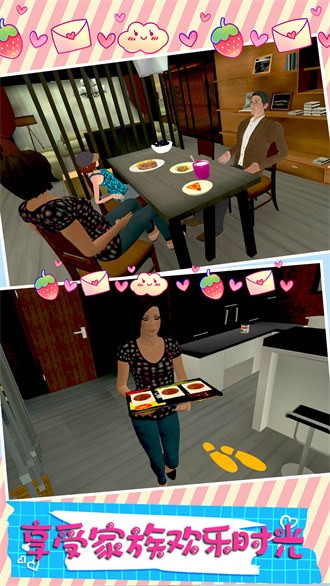 家庭模拟女孩生活中玩家将拥有属于自己的家庭,模拟一个宅趣可爱的少女,享受美食的同时一起开始模拟互动生活,跟孩子一起上下学,制作可口料理,满足一切结婚之后生活的心愿!