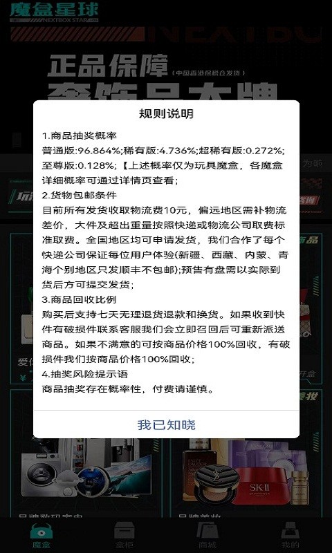 2、正品时尚数码单品在线抽,经过官方检验安全可靠的平台,线上开盲盒轻松快递到家。