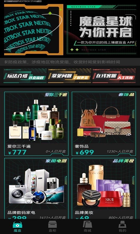 魔盒星球是一款正品盲盒单品潮流每日伤心等你挑选,经过检测安全放心可靠的开箱体验,商品元气满满每天更新。享受经典限量款超酷玩意,每天商品免费更新,还能在线包邮快递到家,随时随地开箱获大奖。