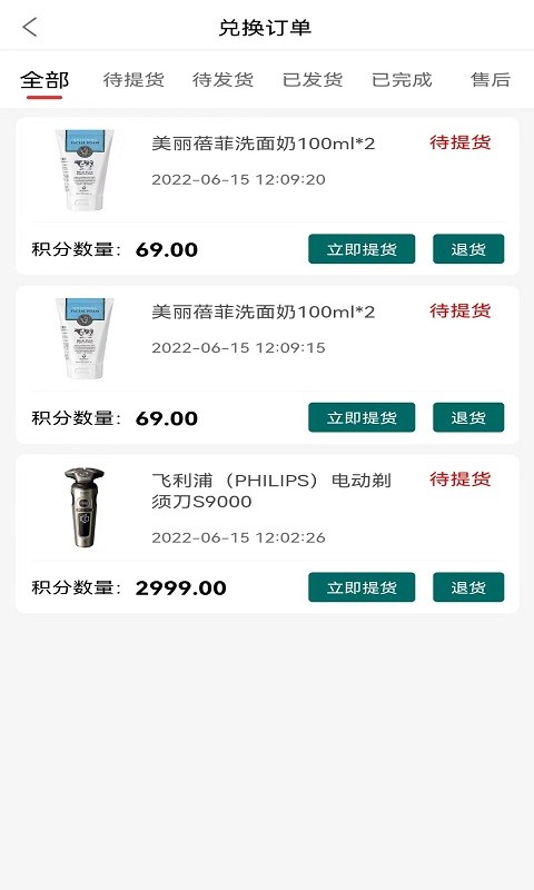 4、一键兑换提货,全部列表更新待发货、已发货等详情数据,为商品更新更多福利。
