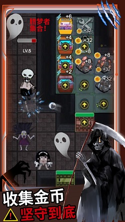 -通过睡觉涨金币获得放置塔防能力,就可以在空地上建造塔防,以对抗幽灵的进攻。