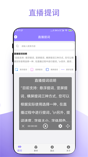 - 强大的直播提词器在线使用,通过悬浮窗、竖屏、横屏等方式开启题词器,告别忘词尴尬;