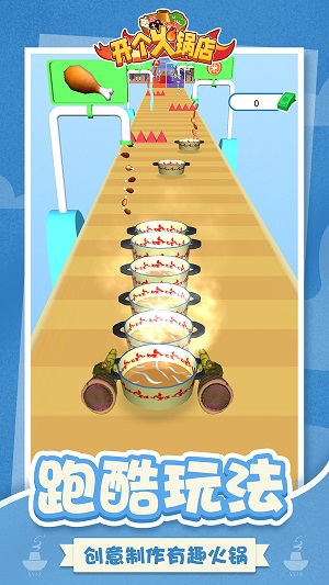 开个火锅店游戏是一款休闲娱乐的跑酷游戏,在关卡中去不断地前进来收集有益的道具去使你的火锅变得更加的值钱,根据自己的喜好来随心搭配制作不同口味的火锅,满足客人到店的愿望来获得更多的收益,升级自己的店铺提高收益。