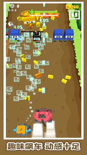 方块战车游戏是一款休闲竞技和闯关游戏,驾驶一辆方块战车来进行前进,消除在道路上遇见的詹爱武,来获得分数,体验不一样的玩法和操作,收集更多的金币来解锁喜欢的赛车进行驾驶,每一辆赛车都有自己独有的技能可以释放。