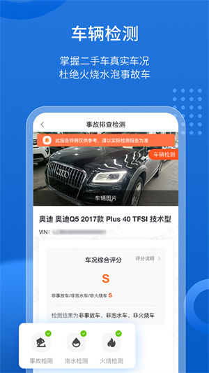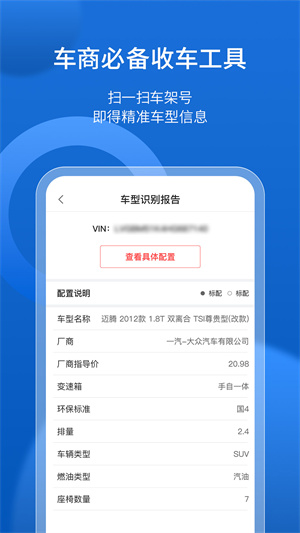 - 在线查询车型报告,一键扫描车架号快速获取到车型信息,精准的信息提供,让大家放心购买;