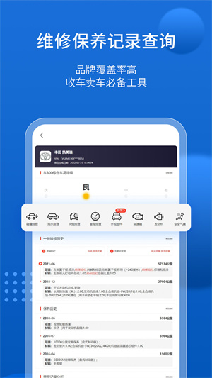 - 维修保养记录查询快速获取到,覆盖超多品牌的记录信息,收车卖车都是必备的工具之一;