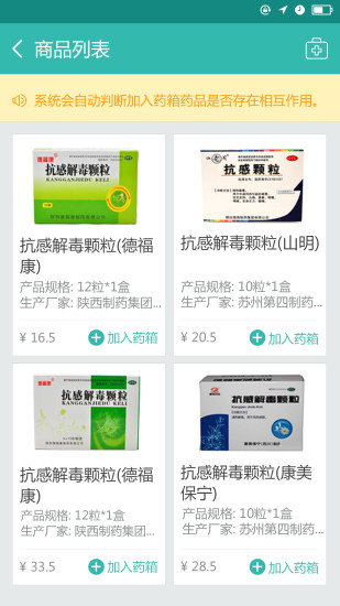 用药安全:对用户选购的药物经行药物配伍禁忌判断和药物相互作用判断及根据用户情况禁忌检测,让用户放心使用药物。