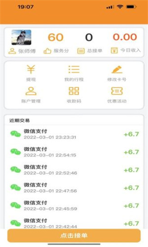 用户可以直接的把自己赚的费用进行提现到银行卡,这样是可以更好的方便用户使用,用户还可以轻松的管理自己的每一笔收入,有任何的问题是可以直接的在线咨询服务的,使用的方式也是非常简单的,你还可以轻松的通过应用来接单和服务。