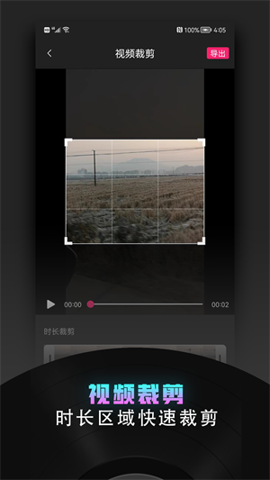 - 自由裁剪视频的时长,在时长区域快速裁剪,获得所需要时长的短视频,更好控制短视频的时长;
