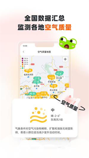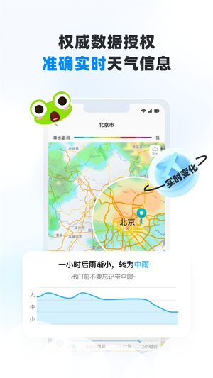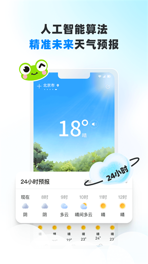 青蛙天气是一款手机上的天气预报助手,为大家提供精准的天气预报信息,让大家每次在家或者出门都能了解到所在地区的天气变化,二十四精准预报、未来40日天气预测等,让大家可以随时获取到自己想要的信息,满足大家的需求。