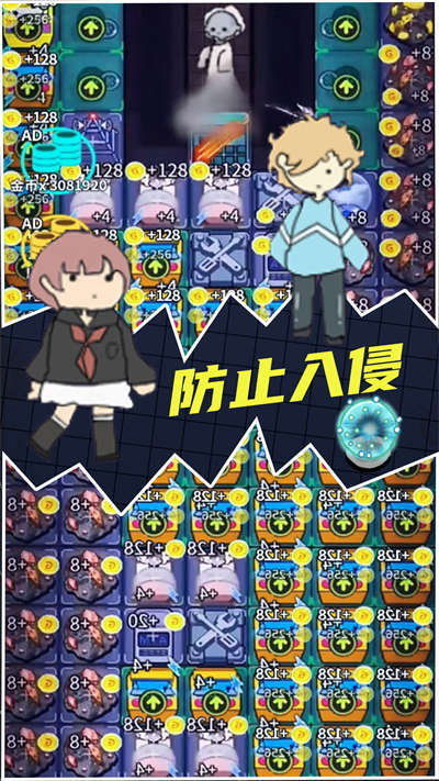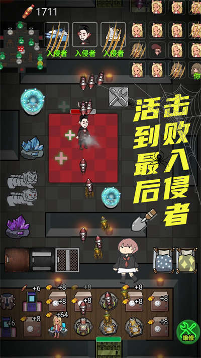 -游戏中玩家可以在房间中的空地板上进行抵御建造,放置更多可以升级塔防;