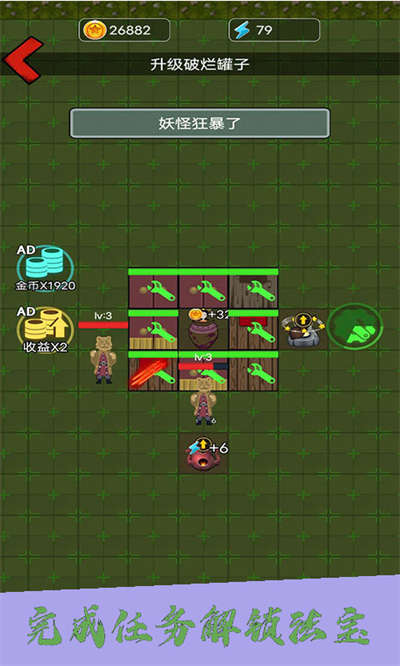 2、猛鬼不断的升级,将会带来强大的成长属性,玩家也需要使用金币不断的升级塔防;