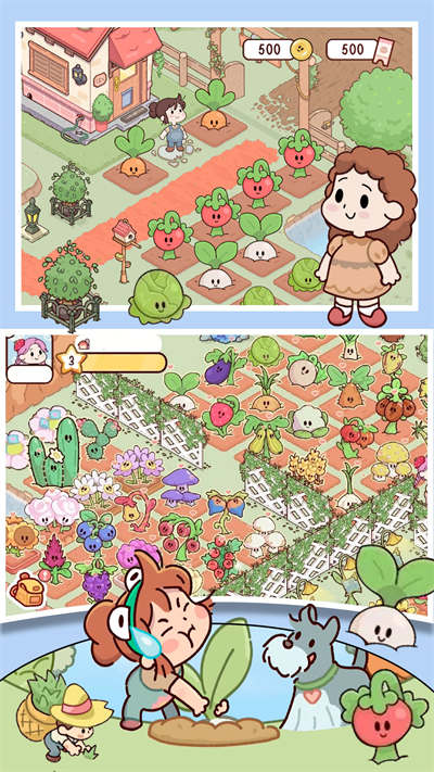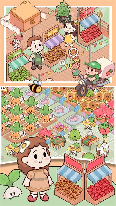 准备好筑造您的梦想了吗,我们开始吧,种植更多的植物,将会带来更多收获,让玩家可以赚取更多的金币,这样良性的循环可以带来更加有趣的体验,创建更多的游戏角色,帮助自己经营农场,带来更加放松的玩法。