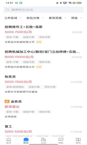 所有用户都是可以轻松的通过软件找到喜欢的工作,还有很多的企业也会在线发布更多的招聘内容,帮助所有的人才都可以更好的求职,而且在这里的各个行业的招聘信息都可以查看,用户自己也可以轻松的设置更多的服务来进行筛选职位。