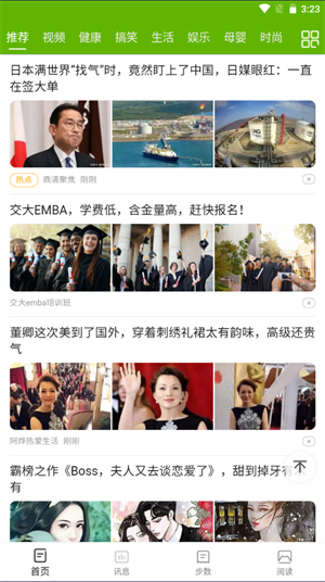 - 提供的资讯类型是非常全面的,新闻、娱乐八卦、搞笑、生活、健康、财经、军事等;