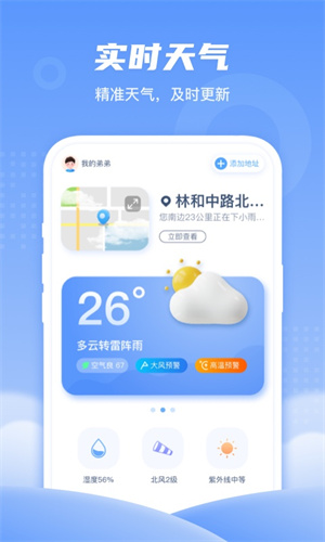 为用户提供了非常多的贴心服务,任何的灾害天气是可以及时提醒用户的,方便所有的用户都可以轻松的了解,也可以更好的做好防范的准备,为用户的日常生活提供了非常多的服务,在这里查看天气信息也是非常全面的,没有任何复杂的操作。