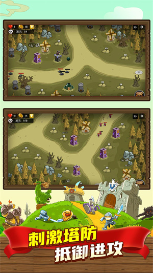 采用了回合制的方式去开展的战斗大家需要发挥出自己的聪明才智将所有的敌人都击杀在营地之外,还有各种道具能够去使用能暂时性的去提升塔防的攻击力度,以及各种模式能够去挑选合理的放置自己手下的士兵。