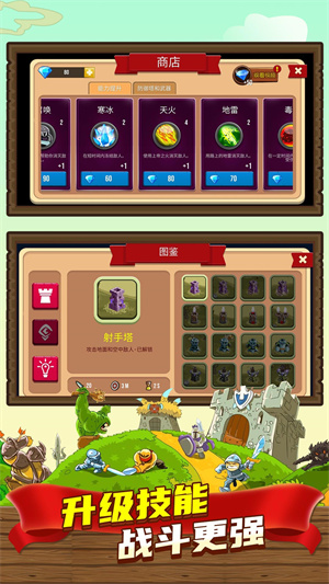 2、所有的防御塔都是能够升级的,击杀敌人能获得相应的金币;