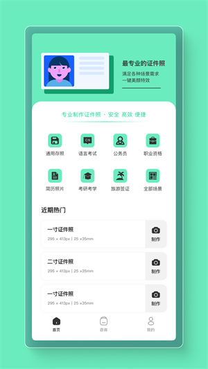 - 优质的手机证件照助手,拥有专业的证件照服务给大家使用,帮助大家轻松拍摄制作各尺寸证件照;