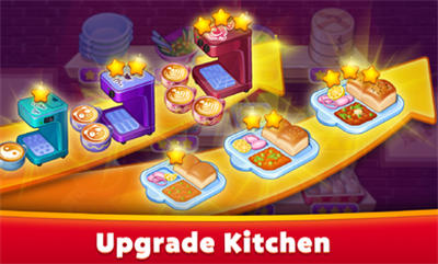 升级烹饪设备和食品,以便快速上菜并赚取更多硬币,赚取硬币可以解锁更多食材;