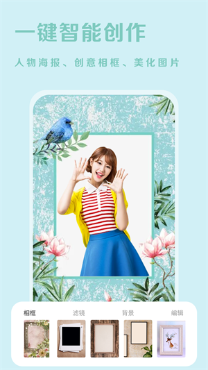 - 一键智能制作创作,轻松制作获得各种人物海报、创意相框、美化图片等资源,让大家更好的选择使用。