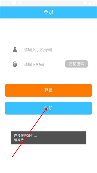 1、在智天运动的登录页面,点击注册,进入注册页面。