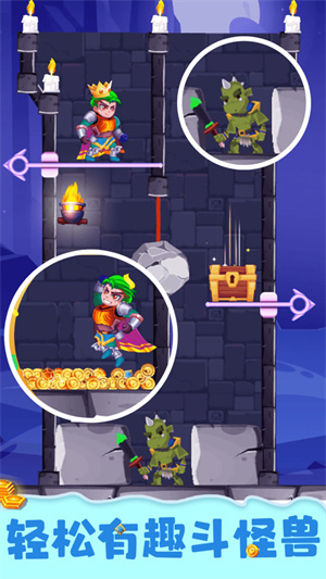 拯救公主骑士是一款休闲益智的闯关游戏,开动自己的脑筋去进行移动针来进行挑战,通过关卡来获得金币奖励去解锁更多的骑士来保卫公主的安全,有着海量的关卡和丰富的内容让玩家去击败敌人来拯救公主,去建造漂亮的城堡居住。