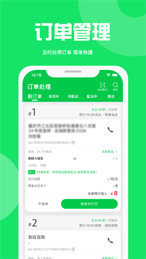 3、[订单管理]方便可靠的订单通知系统,随时随地接单,简易高效;