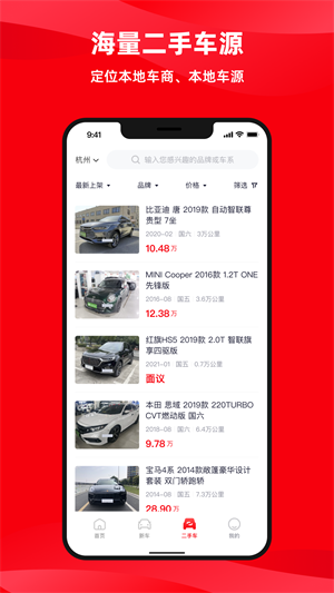 - 包含了二手车、新车等车源给大家选购,大家可以根据自己的需求选择购买,让你轻松购车;