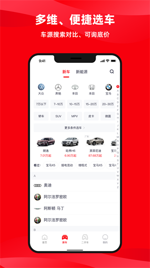 - 专业的买车服务软件,带来海量的车源给大家选车、看车,都是正规汽车,满足大家的购买需求;