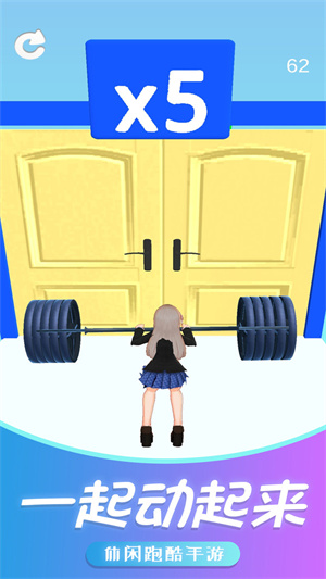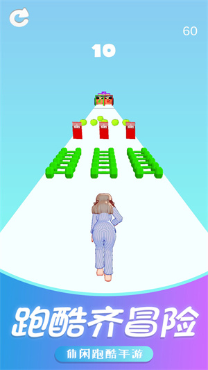 游戏中玩家将操控有个小姐姐在关卡中进行跑酷闯关,通过收集关卡中的有益健康的物品增加自己的健康度让自己变的更加健康,并且躲避有害物品让自己顺利到达终点完成闯关。