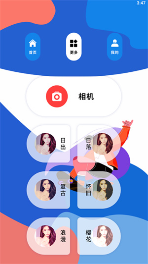 - 带来相机拍照的功能,直接在线拍照,用各种贴纸、特效、滤镜给大家选择,点击快速拍照;