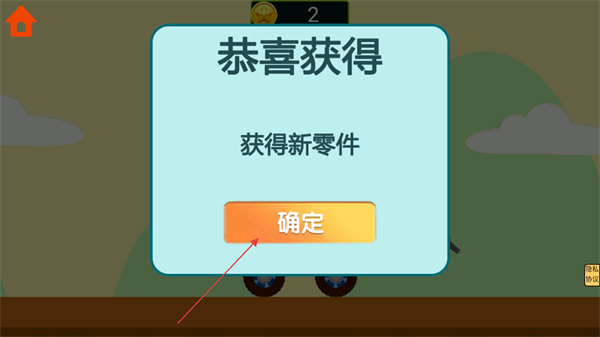 4、通过收集资源、互动探索获得新零件后,会弹出获得新零件的提示,点击确定完成解锁,推进游戏进度。