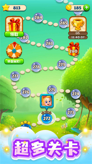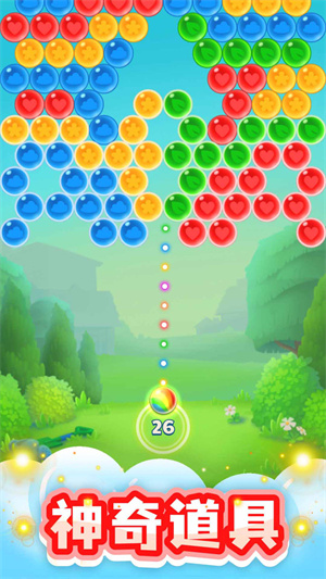 需要玩家去进行发射不同的泡泡来消除,去完成关卡的内容解锁更多的难关,有着丰富的元素和玩法设计,简单的规则需要玩家去尽快的消除所有泡泡。